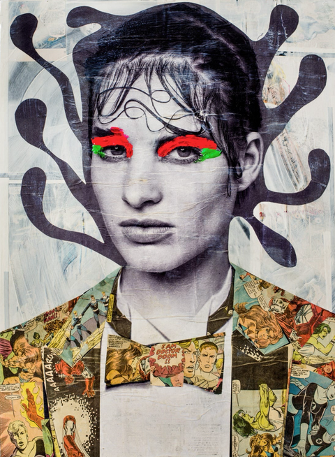 In 2008, Wood made a move to New York City. NYC opened massive opportunities for his vision and creativity and expanded his talents. During the next ten-plus years, what started as just photography expanded into an independent production house that includes art direction, creative consultation, design work, branding, fine art, and photography production and editing. Wood’s rich life experience and multi-faceted talents inform his artwork, which utilizes collage to juxtapose different elements, taking his high-fashion inspiration to new places.