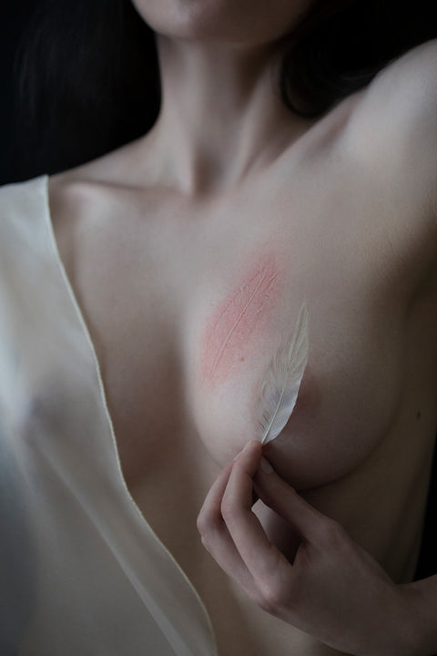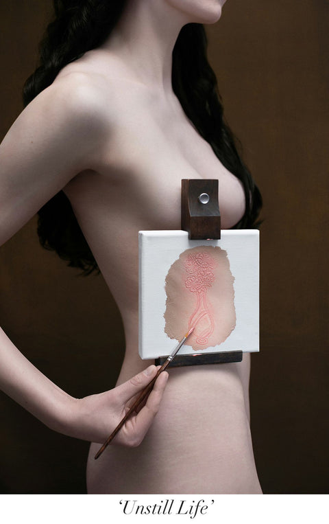 Iness Rychlik is recognized for her dark surreal self-portraits; exploring themes of pain, solitude and vulnerability. Since she suffers from a chronic skin condition, Iness uses her own body as a canvas for artistic expression. She draws on her deeply personal experiences, often reflecting on growing up in a conservative and patriarchal society. The subtle elegance of Rychlik’s compositions contrasts with an underlying aura of brutality. Her conceptual photographs provoke the viewer’s imagination, rather than satisfy it.