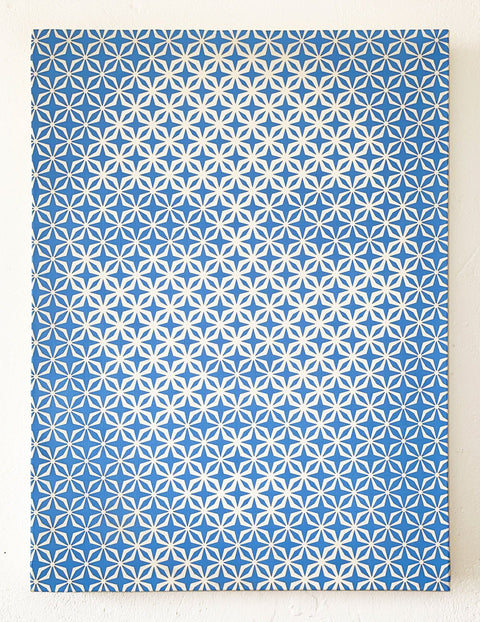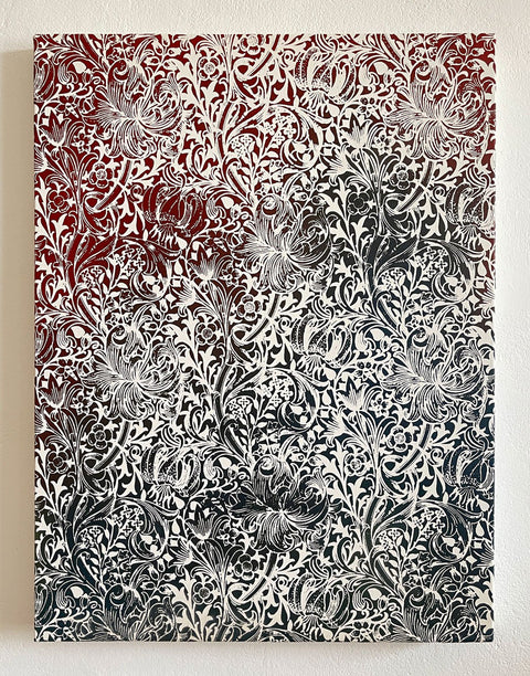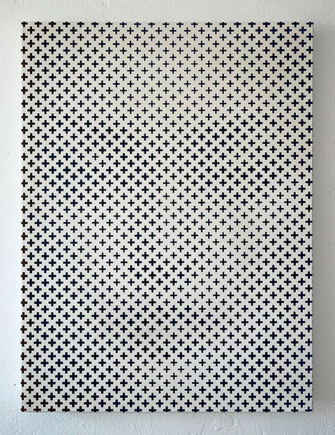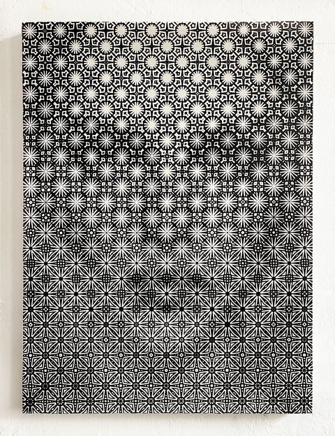 ´With these paintings what is interesting for me is to see how much of the original face can be removed, altered or disguised whilst still maintaining the essence of a person. A recurring theme in my work is pattern, I am drawn to patterns as way to connect to and to participate in an ever evolving visual culture. When I make art I think about whether it is still possible to make images that embody ideas of beauty, faith and truth`.