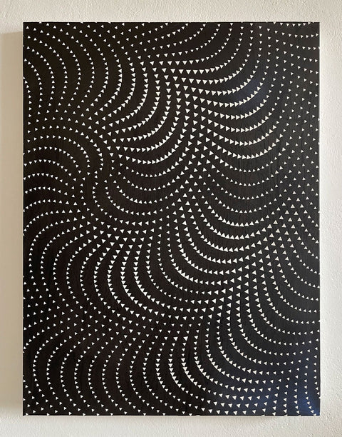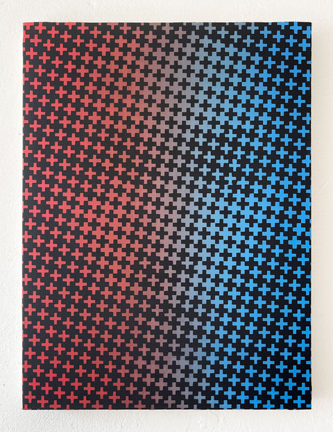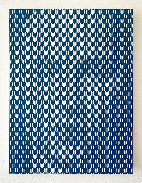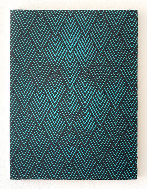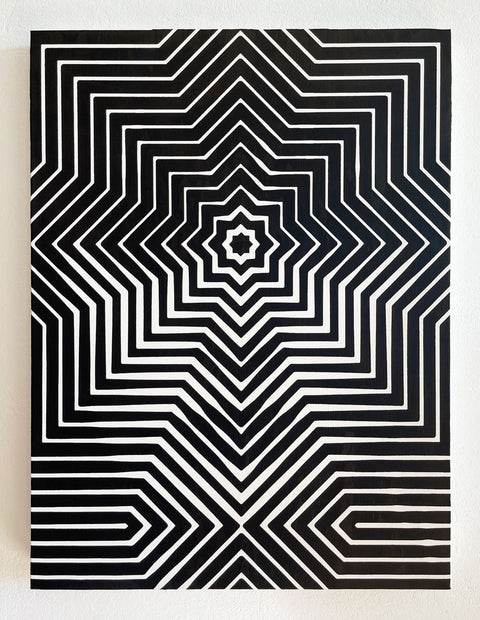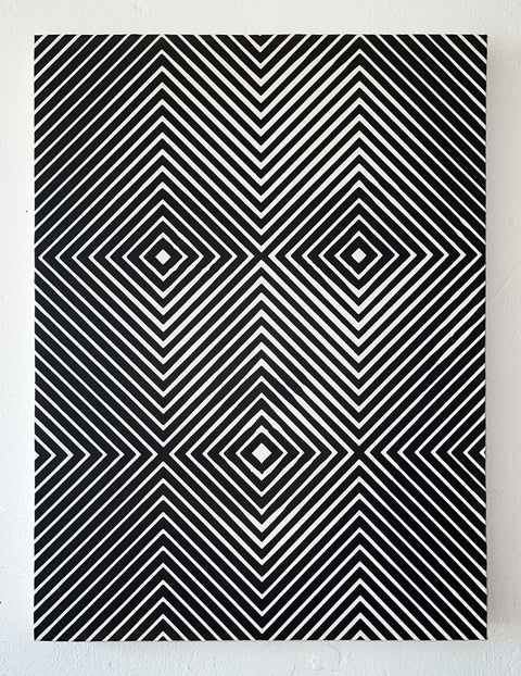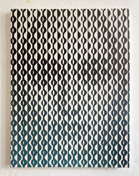 Mostly working in oils Wagstaff intertwines patterns and optical illusions to craft mysterious portraits imbued with elements of surrealism, pop art and Opart.