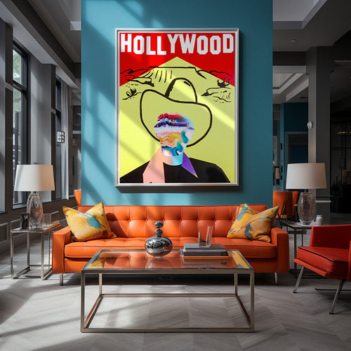 "Hollywood" exudes an air of audacity and power, drawing inspiration from the likes of Andy Warhol, while embracing elements reminiscent of the visionary works of Picasso and Dali. The bold and contrasting colors blend harmoniously, creating a striking visual narrative that celebrates the essence of Hollywood's grandeur.